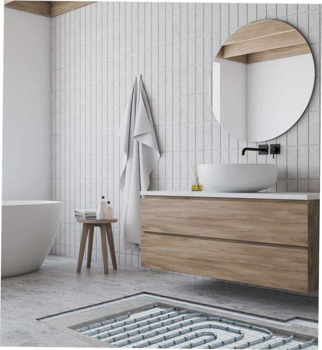 There are also electric underfloor heating systems used for additional heating in specific areas of the home or in the rooms where hydronic underfloor heating cannot be installed, such as bathrooms or kitchens. Unlike hydronic underfloor heating, electric underfloor heating cannot be directly connected to a heat pump, so it is not classified as an efficient system. However, due to its low electricity consumption, it is often used alongside the heat pumps in specific installation locations.